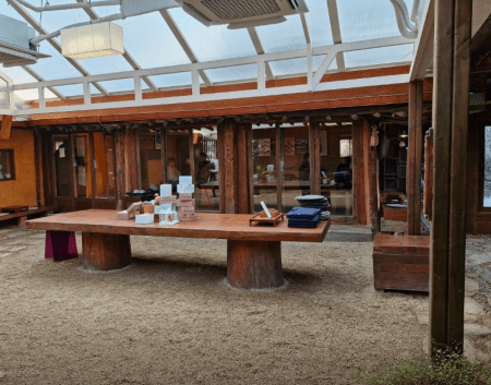 특이하게도 한옥 중정 위에 유리를 설치해, 한겨울에도 따뜻하게 한옥 툇마루에서 차와 디저트를 먹을 수 있도록 만들었습니다.