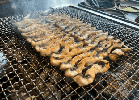 한 달 장어 사용량만 해도 3톤으로 주문과 동시에 직접 손질한 두툼한 장어를 참숯 위에 통째로 올려주면 감탄이 절로 나옵니다.