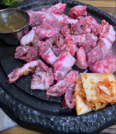 흑돼지로 가장 맛있는 삼겹살 구이를 만들기로 결심하고 버려지던 명란을 좀 더 효율적으로 이용할 방법을 찾던 중 이곳에서만 맛볼 수 있는 명란 흑돼지 삼겹살을 완성했습니다.