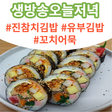 생방송 오늘저녁의 오늘은 김밥 먹는 날에서는 대전광역시 서구에 있는 진미채와 참치의 이색만남으로 매콤 담백한 진참치 김밥을 소개합니다.