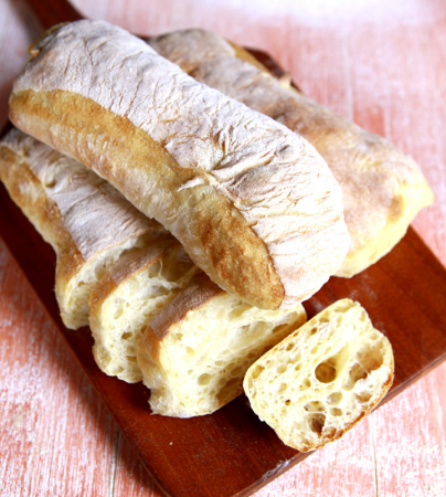 장인은 몸이 아픈 아들이 건강하고 마음껏 먹을 수 있는 빵을 만들어야겠다고 결심했고 그때 그의 눈에 들어온 것은 치아바타입니다.