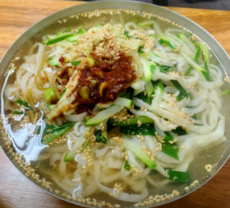 착한 가격은 물론 정성이 가득 담긴 분식왕의 칼국수 중 입맛 따라 취향 따라 골라먹는 재미가 있는데 찬물에 헹군 미지근한 건진국수와 밀가루 반죽을 눌러 만든 뜨거운 누른 국수가 그 주인공입니다.