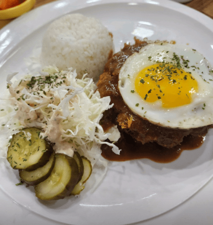 빵가루와 달걀을 묻혀 튀겨 고소함과 풍미를 더했고 소스 역시 남달라 일반 데미그라스 소스와 함께 홀 토마토 페이스트와 양배추즙이 들어가 깔끔하고 개운한 뒷맛이 납니다.