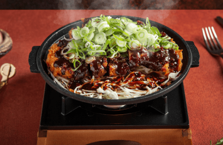 진하고 깊은 나고야 전통 된장소스와 신선한 파를 곁들여 따뜻하게 먹을 수 있는 등심돈가스로 일본의 검은 된장의 진한 소스를 한국인의 입맛에 맞도록 바꾸고 특수 제작한 화로에 올려 먹습니다.