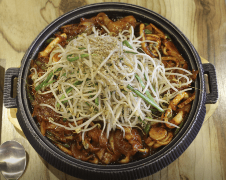 삼겹살도 엄청 많고 오징어도 많고 약간 자극적인 양념의 감칠맛이 중독적이고 불맛도 진하게 나서 더 맛있습니다.