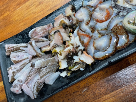 쫄깃한 식감에 단만이 나는 생선회와 오돌오돌 탱글탱글 싱싱하게 입안에서 튕기는 홍해삼 왕뿔소라 전복회 등을 맛볼 수 있습니다.
