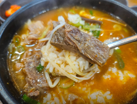 국물은 맑으면서 시원하고 칼칼하고 얼큰한 맛이 속풀이로도 좋고 한우 고기로 담백하고 고소하게 정말 맛있습니다.