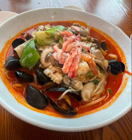 시그니처 메뉴인 죽변짬뽕은 게, 홍합, 가리비, 주꾸미, 새우, 오징어 등 해물토핑이 한가득 있고 다양한 야채들이 푸짐하게 나옵니다.