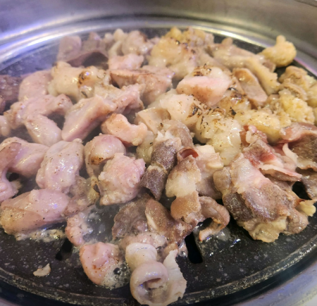 숙주와 한우특수부위가 나오고 사장님이 철판에서 구워서 나오기 때문에 바로 먹을 수 있고 다양한 소의 내장부위인 만큼 식감도 다양합니다.