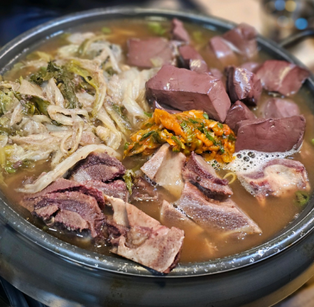 큼지막한 소뼈는 푹 고아져서 쉽게 고기를 발라먹을 수 있었고 먹기 좋은 크기의 선지는 탱글탱글 부드럽게 씹혔습니다.