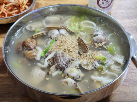 시장이지만 깔끔한 식당 내부에서 정성껏 우려낸 육수로 만들어 깊고 담백한 육수의 맛의 바지락칼국수를 맛볼 수 있습니다.