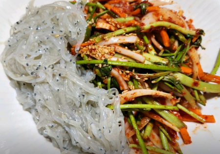 호일로 쌓여진 백합찜은 통통한 살에 국물까지 들어가 있고 백합무침은 매콤, 새콤 그리고 살짝 달콤한 양념에 무쳐져 나옵니다.